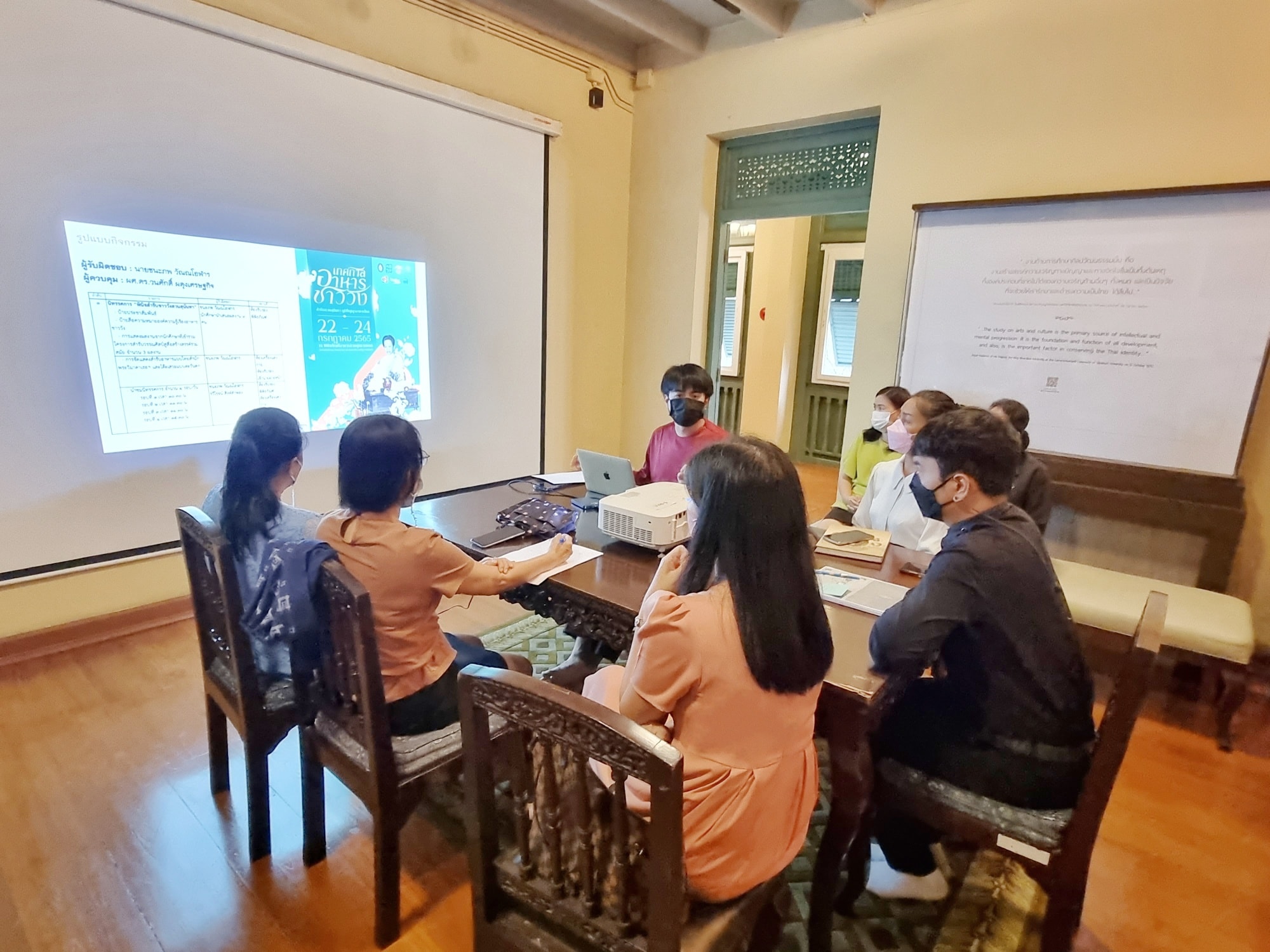 On 15 June 2022, Asst. Prof. Dr. Wanasak Padungsestakit, Deputy Director for Academic and Activity Affairs, Dr. Nantida Otakum, Deputy Director for International Affairs and Cooperation, and staff of the Office of Arts and Culture, held the meeting to plan the Suan Sunandha Cuisine Fair which will be held on 22 – 24 July 2022 at Adorn Dibyanivasa Building: Visual Arts, 3 Silapa Rattanakosin Resource Center (Building 46).