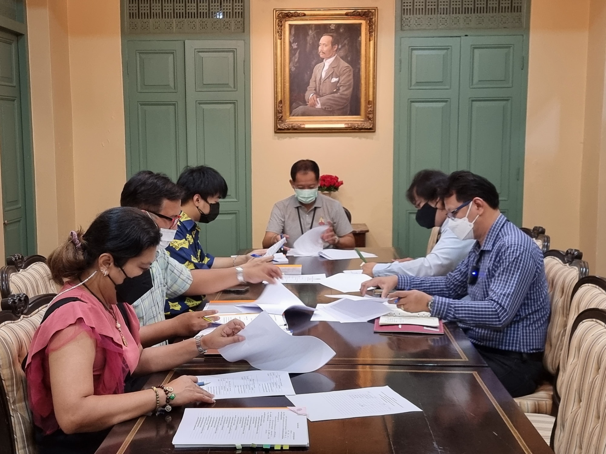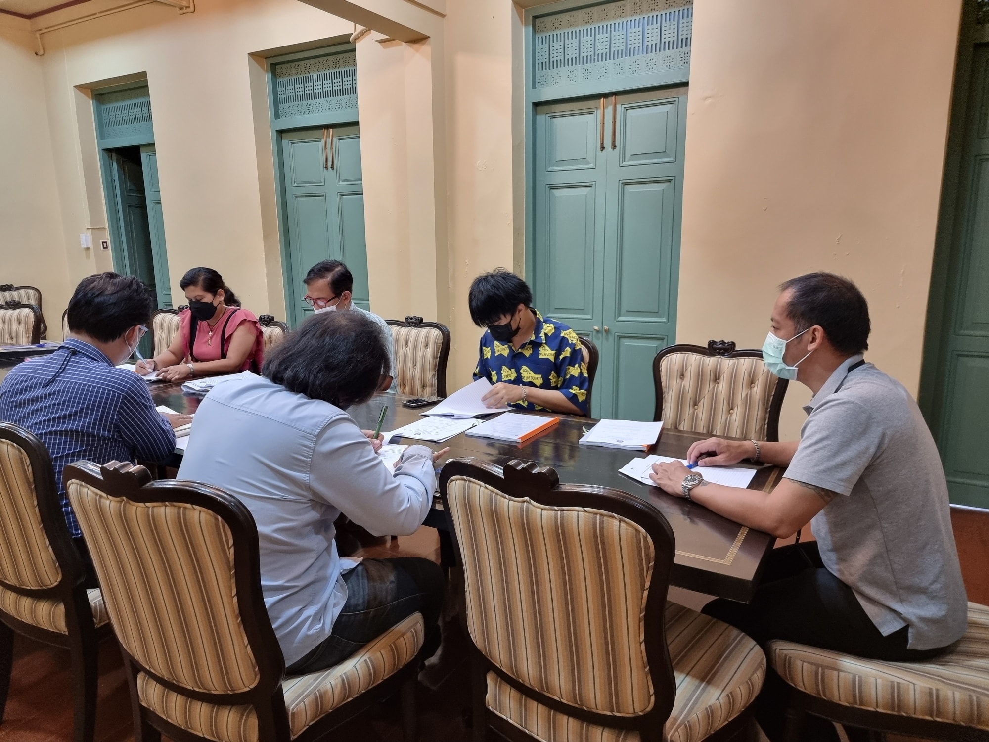 On 22 June 2022, Dr. Peerapol Chatchawan, Director, along with Mr. Kreetha Thumcharoensathit, Deputy Director for Planning and Administration Affairs, and staff of the Office of Arts and Culture, attended the meeting No.6/2022 with Hoshi (Thai) Company Limited team. The objective of this meeting was focused on Sai Suddha Nobhadol Building Museum and Suan Sunandha Tunnel renovation to exhibit SSRU Living Museum.