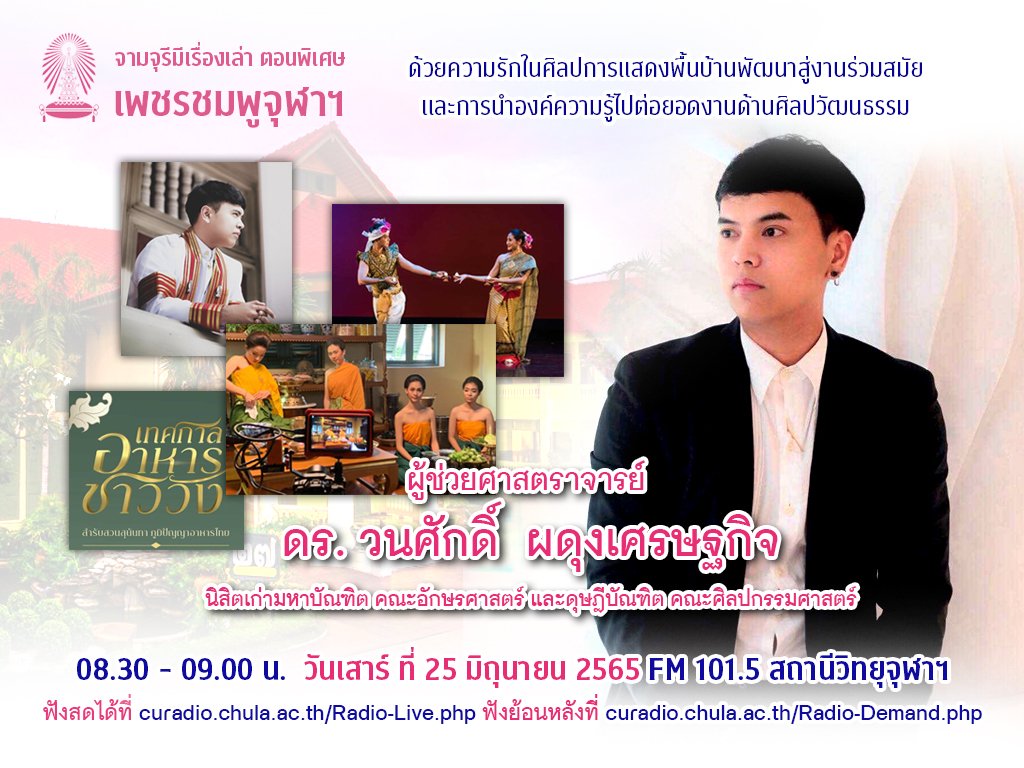 On 25 June 2022, Asst. Prof. Dr. Wanasak Padungsestakit, Deputy Director for Academic and Activity Affairs, would share his memories, and experiences as Chulalongkorn University alumni on Chula live Radio FM 101.5.