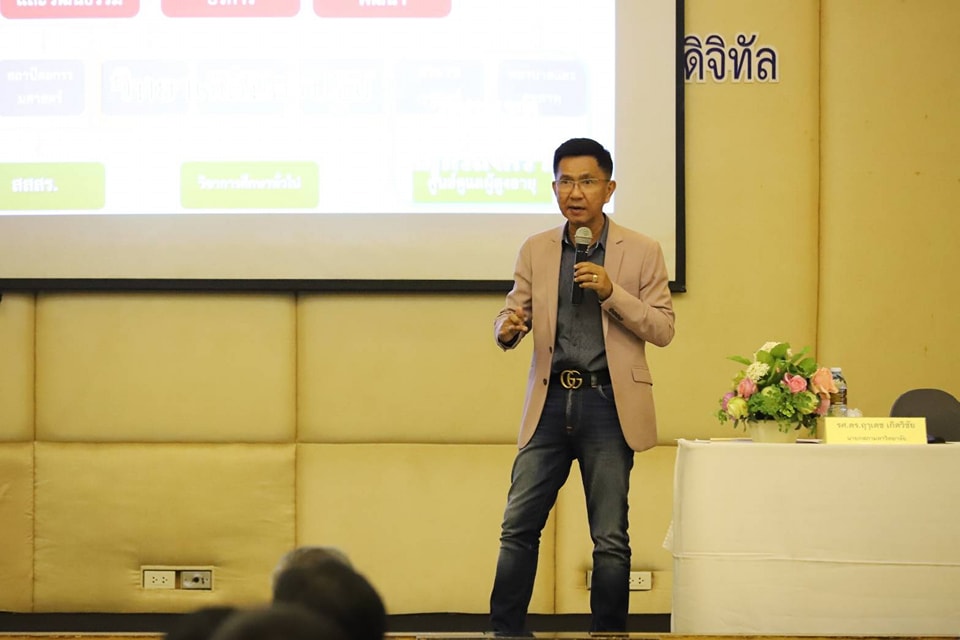 On 26 September 2022, the Office of Arts and Culture, led by Dr. Peerapol Chatchawan, Director of the Office of Arts and Culture, Mr. Kreetha Thumcharoensathit, Deputy Director for Administration Affairs, and Planning, and Ms. Sulawan Pansri, Head Office, attended the Reinventing University to Digital University Meeting on 26-28 September 2022. In this regard, Assoc. Prof. Dr. Chutikarn Sriviboon, the President of Suan Sunandha Rajabhat University, presided over the opening ceremony. Apart from this, Assoc. Prof. Dr. Luedech Girdwichai, the President of University Council, and Mr. Patrick Low Beng Chee from Huawei ASEAN, was the speaker in this meeting. The venue took place at Dor-Shada Resort by The Sea and was run by the Human Resource Division.