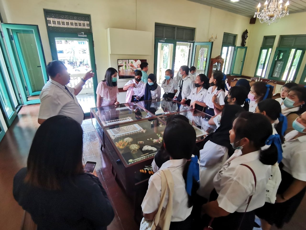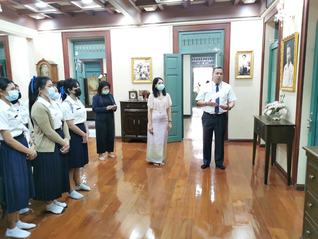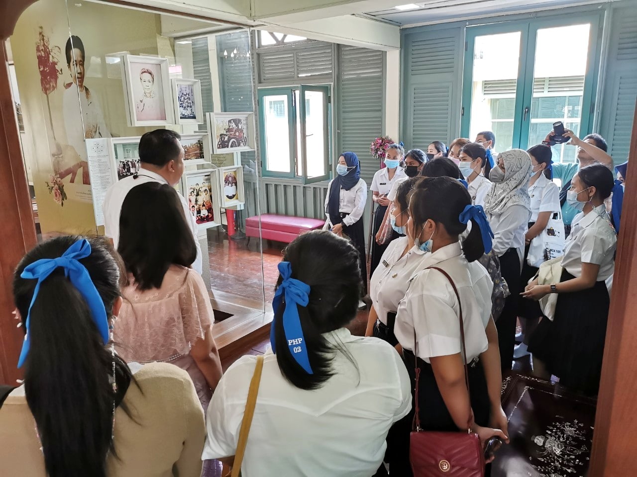 On March 15th, staff members of the Office of Arts and Culture welcomed Assist.Prof.Dr. Peerada Damapong, and freshmen of College of Allied Health Sciences on occasion of learning Suan Sunandha history through visiting Sai Suddha Nibhadol Building Museum, the important heritage of Suan Sunandha.