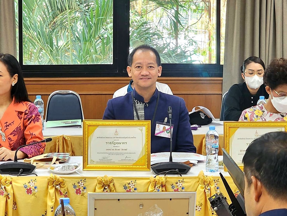 อาจารย์ ดร.พีระพล ชัชวาลย์ ผู้อำนวยการสำนักศิลปะและวัฒนธรรม มหาวิทยาลัยราชภัฏสวนสุนันทา ร่วมการประชุมวิชาการสภาศิลปะและวัฒนธรรม มหาวิทยาลัยราชภัฏแห่งประเทศไทย ประจำปี ๒๕๖๖ ซึ่งเป็นการประชุมสำคัญของเครือข่ายองค์กรด้านศิลปะและวัฒนธรรมของมหาวิทยาลัยราชภัฏทั่วประเทศ โดยในปีนี้มหาวิทยาลัยราชภัฏสุราษฎร์ธานี เป็นเจ้าภาพ เมื่อวันที่ ๑๘ พฤษภาคม ๒๕๖๖ ณ โครงการจัดตั้งสถาบันพัฒนาการท่องเที่ยวและสหวิทยาการสมุย มหาวิทยาลัยราชภัฏสุราษฎร์ธานี อำเภอเกาะสมุย จังหวัดสุราษฎร์ธานี ทั้งนี้อาจารย์ ดร.พีระพล ชัชวาลย์ ได้เข้ารับรางวัล “ราชภัฏคุณากร” จากสภาศิลปะและวัฒนธรรม มหาวิทยาลัยราชภัฏแห่งประเทศไทย ซึ่งเป็นรางวัลยกย่องเชิดชูปราชญ์ผู้มีผลงานดีเด่นและมีผู้มีคุณูปการต่องานด้านศิลปวัฒนธรรม และในการนี้สำนักศิลป์ได้นำนิทรรศการ “พัสตราภรณ์แห่งกรุงรัตนโกสินทร์” ซึ่งแสดงหุ่นจำลองการแต่งกายของบุรุษชนชั้นนำสมัยรัชกาลที่ ๔ และการแต่งกายของสตรีในราชสำนัก อันเป็นส่วนหนึ่งในนิทรรศการ “ผ้ายก พัสตราภรณ์ล้ำค่า ภูษาสองแผ่นดิน” “Brocade Textile : Treasure of Two Nations”