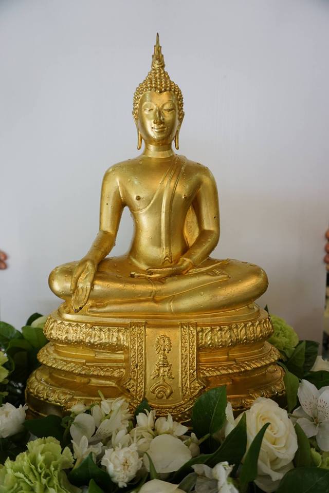 ปี ๒๕๑๒ วิทยาลัยครูสวนสุนันทา ได้ทำหนังสือกราบบังคมทูลขอพระราชทานจัดสร้างพระพุทธรูปสำคัญสำหรับวิทยาลัย ซึ่งขณะนั้นยังไม่มี โดยเห็นว่าควรสร้างพระพุทธรูปปางประทานพรแบบพระราชนิยมในรัชกาลที่เรียกว่าแบบ ภปร. ซึ่งได้ทรงพระกรุณาโปรดให้วัดเทวสังฆาราม และวัดบวรนิเวศวิหารในสมัยที่เจ้าพระคุณสมเด็จพระญาณสังวร สมเด็จพระสังฆราชฯ แต่ครั้งยังดำรงสมณศักดิ์ที่พระสาสนโสภณ เป็นเจ้าอาวาสได้จัดสร้างขึ้น วิทยาลัยจึงทำหนังสือผ่านต้นสังกัด ขอพระราชทานพระบรมราชานุญาตจัดสร้างพระพุทธรูปตามแบบพระราชนิยม กับขอพระราชทานนาม และขอพระราชทานพระปรมาภิไธยย่อ ภปร. ประดิษฐานไว้ที่ผ้าทิพย์ของพระพุทธรูปด้วย