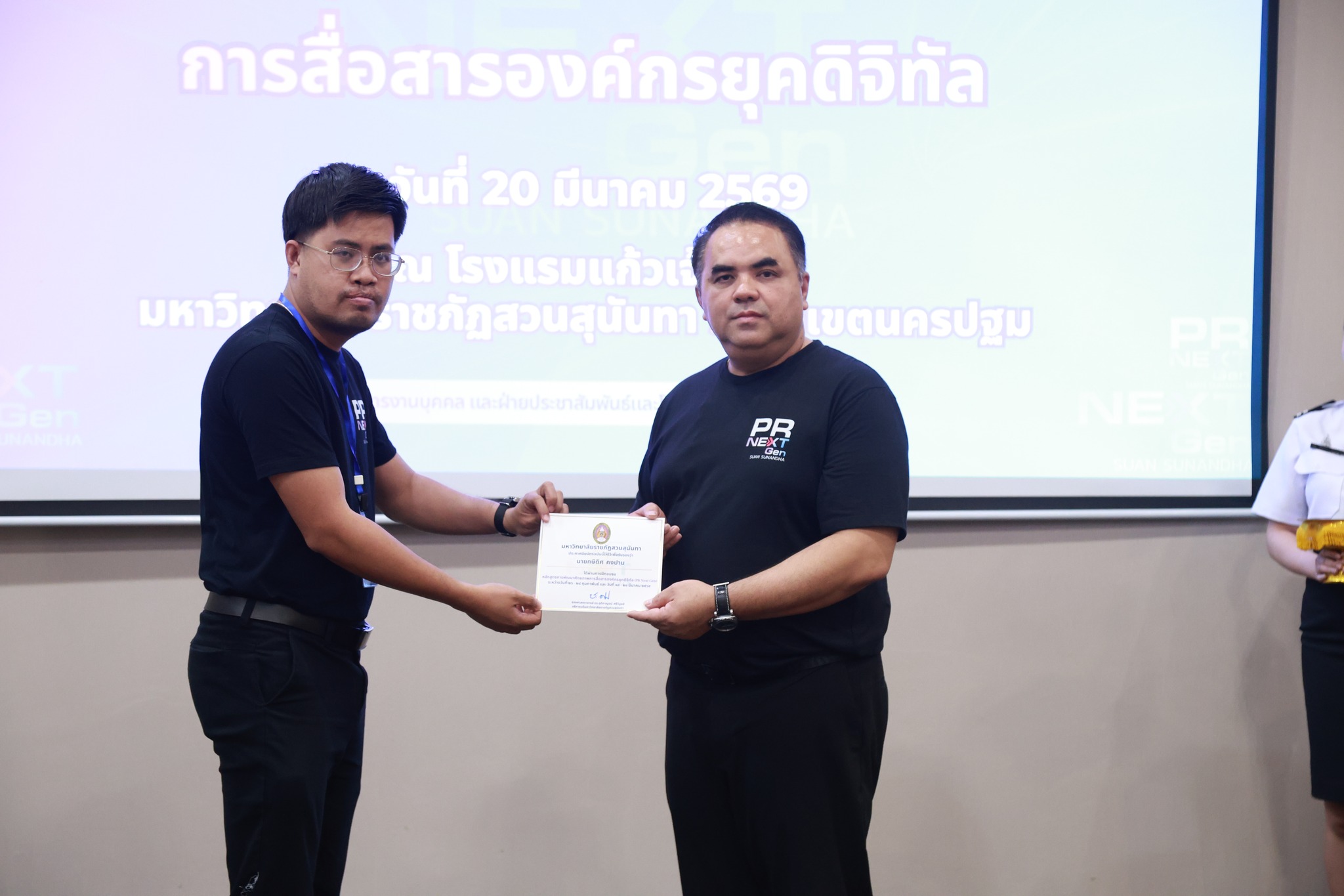 สำนักศิลปะและวัฒนธรรม มหาวิทยาลัยราชภัฏสวนสุนันทา ส่งบุคลากรเข้าร่วมอบรมพัฒนาศักยาภาพการสื่อสารองค์กรยุคดิจิทัล "PR NEXT GEN" ประจำปีงบประมาณ พ.ศ. ๒๕๖๙ โดยนายกษิดิศ คงปาน ตำแหน่ง นักวิเคราะห์นโยบายและแผน ได้เข้าร่วมอบรมเมื่อวันที่ ๒๖-๒๘ กุมภาพันธ์ และ ๑๘-๒๐ มีนาคม ๒๕๖๙ ณ มหาวิทยาลัยราชภัฏสวนสุนันทา วิทยาเขตนครปฐม
