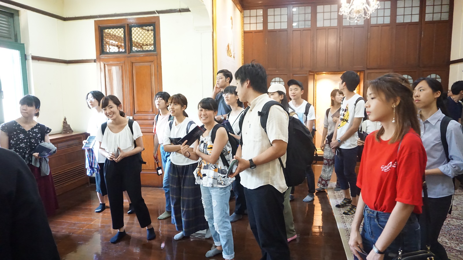 เมื่อวันที่ 12 กันยายน ที่ผ่านมา สำนักศิลปะและวัฒนธรรม ได้มีโอกาสต้อนรับนักศึกษาโครงการแลกเปลี่ยนระหว่างมหาวิทยาลัยเกษตรศาสตร์ และ University of Tsukuba จำนวน 26 คน เข้าเยี่ยมชมพิพิธภัณฑ์อาคารสายสุทธานภดล ตำหนักที่ประทับเดิมของพระวิมาดาเธอ กรมพระสุทธาสินีนาฏฯ รวมถึงแหล่งเรียนรู้ 3 ศิลป์รัตนโกสินทร์ ที่จัดแสดงศาสตร์ของศิลปะทั้ง 3 คือ ดุริยศิลป์ ทัศนศิลป์ และนาฏศิลป์ ซึ่งตัวแทนนักศึกษาชาวญี่ปุ่นได้กล่าวว่า “ประทับใจกับวัฒนธรรมของไทยเป็นอย่างมาก โดยเฉพาะในช่วงสมัยรัชกาลที่ 1-5 เพราะเป็นช่วงยุคที่อิทธิพลจากทางยุโรปยังไม่เข้ามา จึงทำให้ช่วงนั้นเป็นยุคที่เค้าชอบและประทับใจมาก”